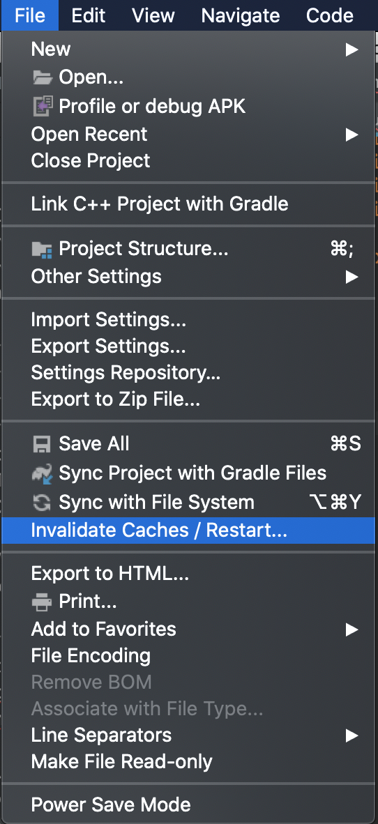이후 나오는 팝업 창에서 Invalidate and Restart를 누르면 끝이다.