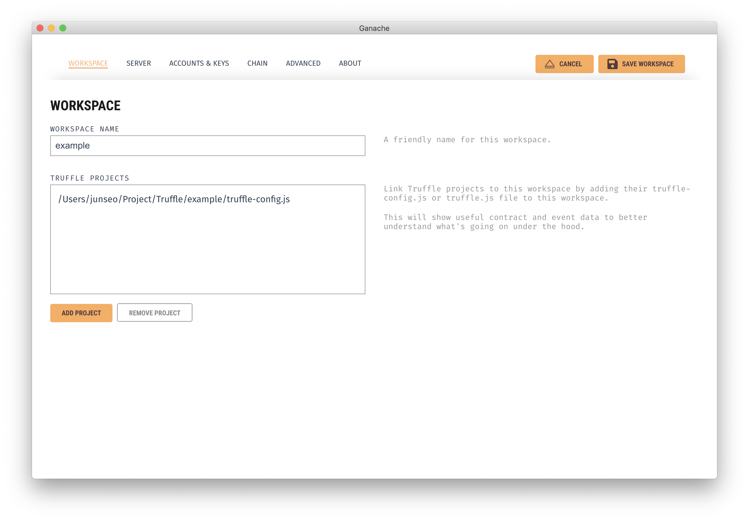 Truffle Projects 에 Add Project를 클릭하여 아까 만든 프로젝트 폴더에 있는 truffle-config.js를 임포트 한다.