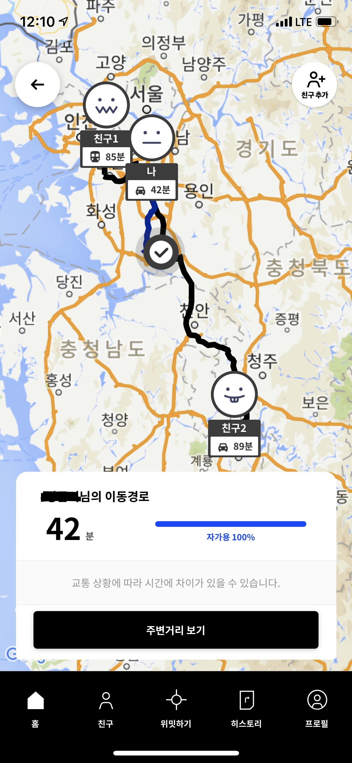 거리가 좀 먼 친구들끼리 어디에서 만나면 좋을지 중간지점을 계산해 주는 앱이 있는데..